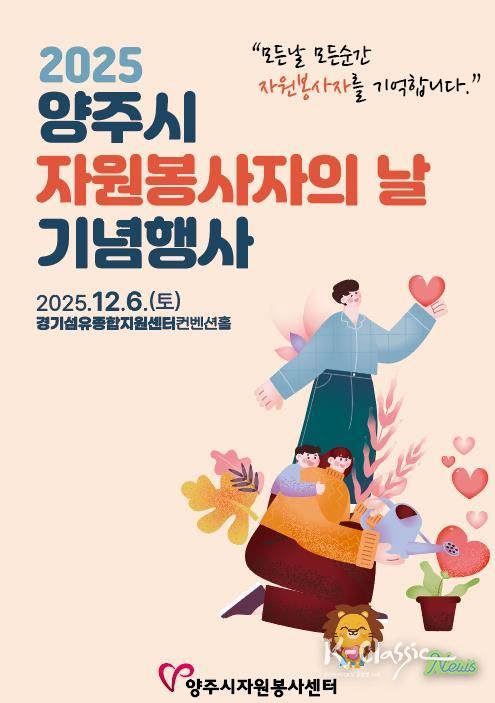 K-Classic News 기자 | 양주시자원봉사센터는 오는 12월 6일, ‘2025 양주시 자원봉사자의 날 기념행사’를 개최한다고 밝혔다.