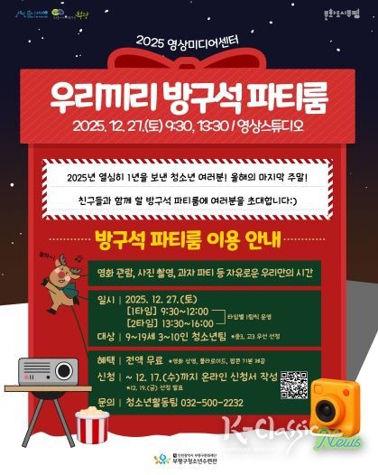 K-Classic News 기자 | 부평구 청소년수련관은 부평 청소년들을 위한 ‘우리끼리 방구석 파티룸’을 운영한다고 28일 밝혔다.