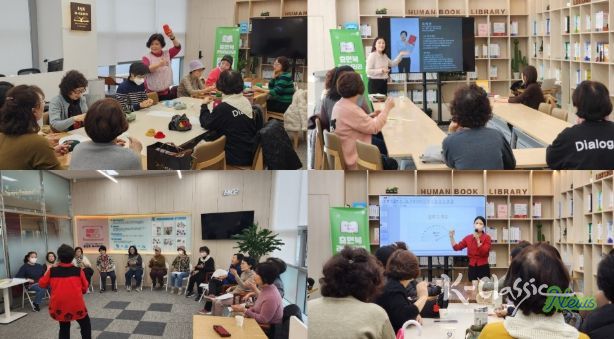 강좌는 △누구나 쉽게 배우는 손뜨개(차효순 휴먼북, 11월 11·25일) △내 삶을 주도적으로 경영하는 방법(최혜련 휴먼북, 11월 13일) △숟가락난타 교실(정순영 휴먼북, 11월 20일) △실전 블로그 마케팅(김하경 휴먼북, 11월 25일) 등으로 구성됐으며, 회차당 약 20명이 참여했다.