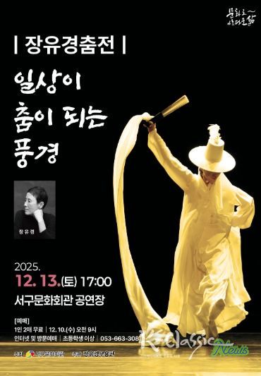 K-Classic News 기자 | 서구문화회관은 12월 13일 오후 5시 서구문화회관 공연장에서 장유경 무용단을 초청하여‘장유경춤전 - 일상이 춤이 되는 풍경’공연을 개최한다.