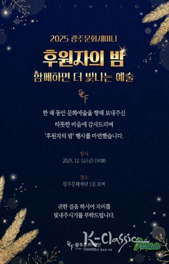 2025년 12월 12일 19시 광주문화재단에서 진행되며, 후원자와 기업, 예술인 등이 함께 참여할 예정이다.