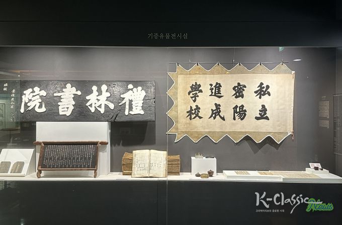 주요 전시품 중 하나는 예림서원 현판이다. 예림서원은 점필재 김종직을 배향한 서원으로, 1669년 현종으로부터 사액을 받은 곳이다. 이 현판은 당시 밀양지역 교육과 학문 활동의 위상을 보여주는 자료다.