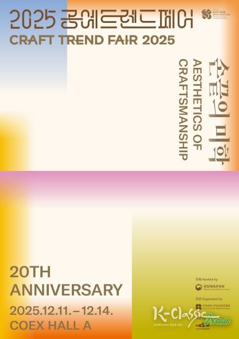 K-Classic News 기자 | 문화체육관광부는 한국공예·디자인문화진흥원과 함께 12월 11일부터 14일까지 코엑스(서울 강남구)에서 ‘손끝의 미학’을 주제로 ‘2025 공예트렌드페어’를 열어 공예의 다양성과 시장성을 조명한다. 개막식은 행사 첫날인 12월 11일 오후 5시에 열리며, 이 자리에서 올해의 공예상 시상식도 함께 진행한다. ‘올해의 공예상’ 수상자로는 창작 부문에서 오화진 작가(섬유), 이론 부문에서 강재영 전시기획자를 선정했다.
