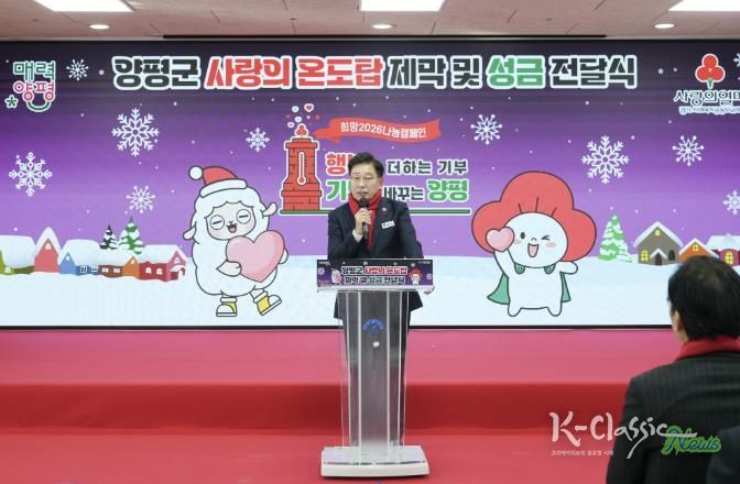 K-Classic News 기자 | 양평군은 지난 11일 양평군청 별관 4층 대회의실에서 ‘희망2026 나눔캠페인 사랑의 온도탑 제막 및 성금 전달식’을 개최했다고 밝혔다.