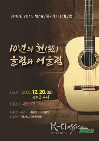 K-Classic News 기자 | 음악동호회 활동을 통해 중년의 낭만을 만끽해 온 사천 새솔통기타 클럽이 연말을 맞아 창립 10주년을 기념하는 음악회를 개최한다.