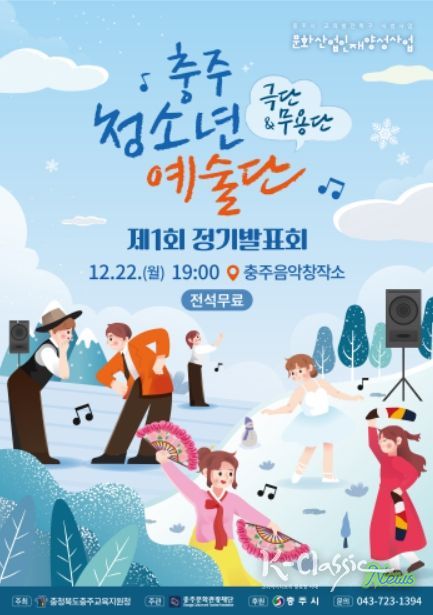 K-Classic News 기자 | 충주문화관광재단은 12월 22일 저녁 7시, 충주음악창작소에서 충주 청소년 예술단(극단·무용단) 제1회 정기발표회를 개최한다고 밝혔다.