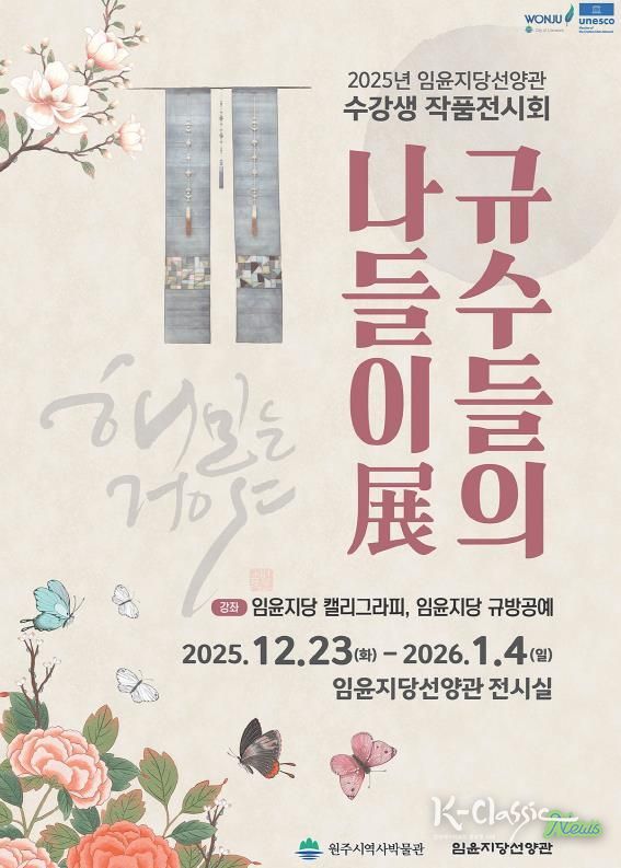 K-Classic News 기자 | 원주시 임윤지당선양관은 오는 23일부터 내년 1월 4일까지 선양관 전시실에서 수강생 작품전시회 ‘규수들의 나들이展(전)’을 개최한다.