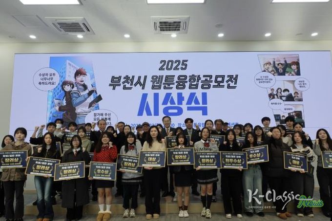 K-Classic News 기자 | 부천시는 지난 22일 웹툰융합센터에서 ‘2025 부천시 웹툰융합공모전 시상식’을 열었다. 이번 시상식은 서울신학대학교와 부천대학교가 공동으로 주최·주관했으며, 공모전 수상작 시상과 성과 공유를 위해 마련됐다.