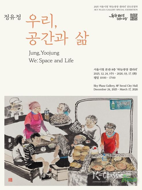 K-Classic News 기자 | 일상 속에서 만나는 따뜻한 웃음의 순간들이 한지 위에 펼쳐진다. 12월 24일부터 2026년 3월 17일까지 서울시청 본관 8층 ‘하늘광장 갤러리(Sky Plaza Gallery)’에서 정유정 작가의 ‘우리, 공간과 삶’ 전시가 열린다.