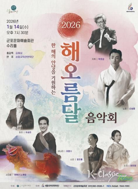 K-Classic News 기자 | 군포문화재단은 오는 1월 14일 오후 7시 30분, 군포문화예술회관 수리홀에서 신년 기획공연‘2026 해오름달 음악회’를 개최한다.