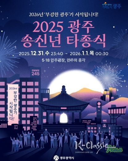 행사에는 강기정 시장을 비롯한 2025년 한 해 광주를 빛낸 시민대표 18명으로 구성된 타종 인사와 시민 등 3000여명이 참석할 예정이다.