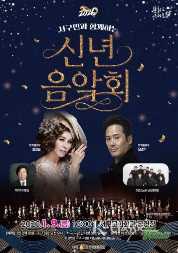 K-Classic News 기자 | 서구문화회관(관장 하현주)은 희망찬 활력이 솟아나는 2026 병오년 새해 인사로 서구민과 함께하는‘2026 신년음악회’를 1월 9일 오후 4시 서구문화회관 공연장에서 개최한다.