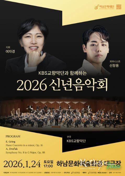 하남문화재단 신년음악회는 매년 새해의 시작을 음악으로 맞이할 수 있도록 기획된 재단의 대표 클래식 공연으로, 올해 역시 시민들의 높은 관심과 호응 속에 전석 매진을 기록하며 공연에 대한 기대감을 높이고 있다. 대한민국 교향악단의 자존심으로 불리는 KBS교향악단이 무대에 올라 깊이 있고 웅장한 연주를 선보일 예정이며, 섬세하고 단단한 음악 해석으로 주목받는 지휘자 여자경과 화려한 테크닉과 세련된 연주로 사랑받는 피아니스트 신창용이 협연자로 함께해 완성도 높은 무대를 예고하고 있다.