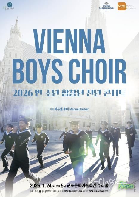 K-Classic News 기자 | 군포문화예술회관은 2026년 새해를 여는 기획공연으로, 500년의 역사를 지닌 세계 최고의 소년합창단 “빈 소년 합창단(Wiener Sängerknaben)”의 내한공연 '2026 빈 소년 합창단 신년 콘서트'를 오는 1월 24일(토) 오후 5시, 수리홀에서 개최한다.