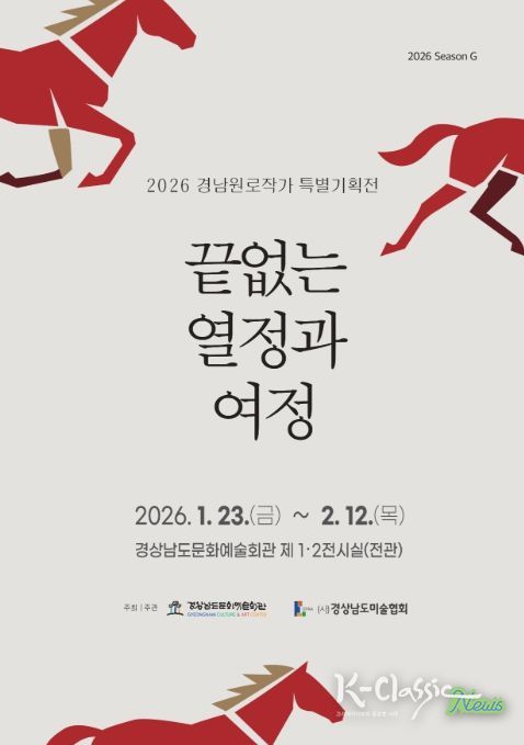 K-Classic News 기자 | 경남문화예술회관은 1월 23일부터 2월 12일까지 제1·2전시실 전관에서 2026 경남원로작가 특별기획전 ‘끝없는 열정과 여정’을 개최한다고 밝혔다.