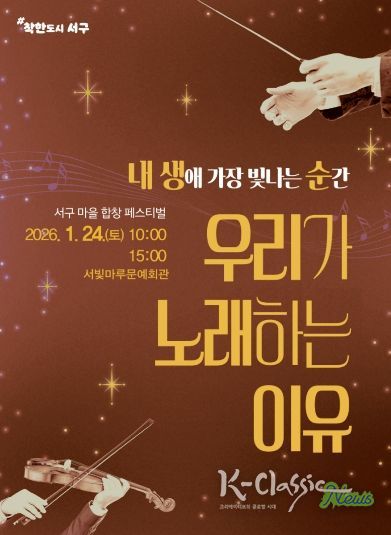 김이강 서구청장은 “주민 각자의 목소리가 어우러지며 마을이 하나 되는 힘을 만들어내고 있다”며 “앞으로도 마을마다 음악과 선율이 흐르는 풍요로운 생활문화가 자리 잡을 수 있도록 마을합창단 활동을 지속적으로 지원하겠다”고 말했다.