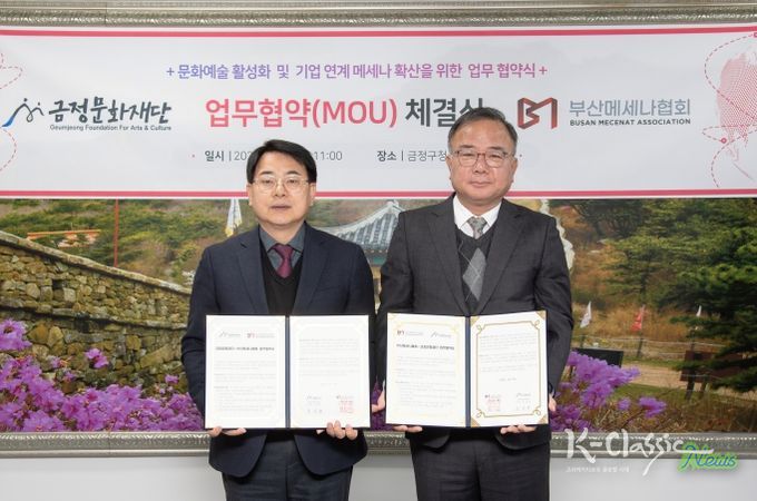 K-Classic News 기자 | 금정문화재단(이사장 윤일현)은 지난 21일 금정구청에서 (사)부산메세나협회(회장 백정호)와 지역 문화예술 활성화 및 메세나 사업 확산을 위한 업무협약(MOU)을 체결했다고 밝혔다.