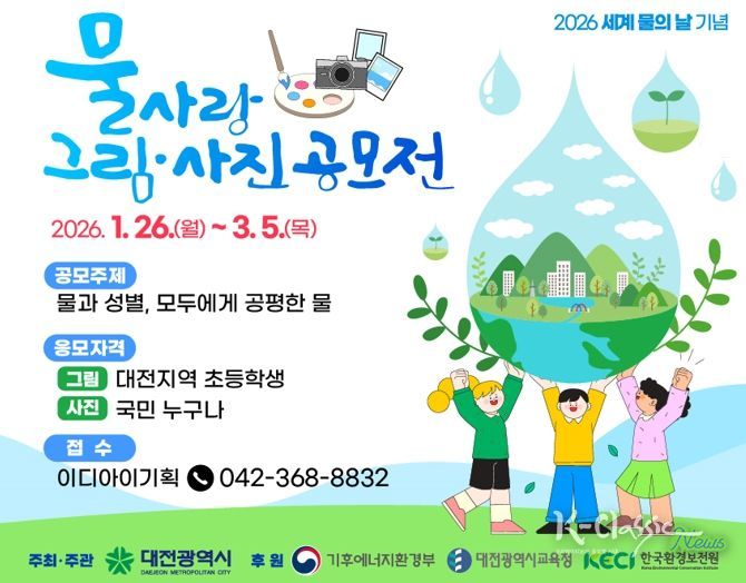 K-Classic News 기자 | 대전시는 ‘세계 물의 날(3월 22일)’을 맞아 물 환경에 대한 관심을 높이고 수자원의 중요성을 알리기 위해 ‘물사랑 그림․사진 공모전’을 개최한다.