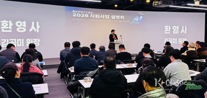 (재)충남콘텐츠진흥원(이하 ‘진흥원’, 원장 김곡미)은 1월 28일 충남콘텐츠기업지원센터 이벤트홀에서 열린 ‘2026년 지원사업 설명회’를 통해 올해 지원사업의 주요 방향과 세부 내용을 현장에서 공유하고, 도내 콘텐츠 기업과 창작자들의 사업 준비를 본격화하는 계기를 마련했다.