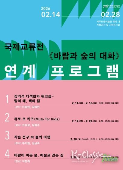 K-Classic News 기자 | 제주도립미술관(관장 이종후)은 오는 2월 14일부터 28일까지 2주간 ‘국제교류전 《바람과 숲의 대화》의 연계 체험프로그램’을 운영한다고 밝혔다.