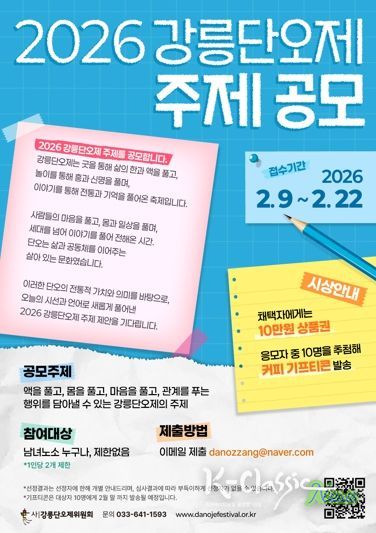 K-Classic News 기자 | (사)강릉단오제위원회는 2026 강릉단오제 주제 공모를 오는 2월 9일부터 2월 22일까지 진행한다.