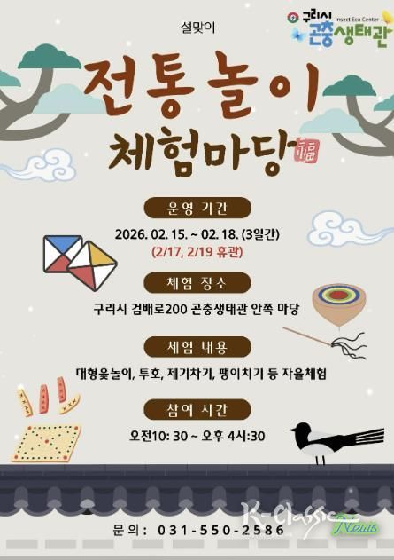 K-Classic News 기자 | 구리시는 민족 최대의 명절 설을 맞아 오는 2월 15일부터 18일까지 구리시 곤충생태관에서 ‘2026 설맞이 전통 놀이 체험 마당’을 운영한다고 밝혔다.