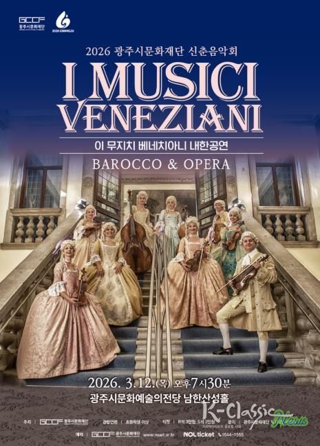 K-Classic News 기자 | (재)광주시문화재단은 2026년 신춘음악회로 이탈리아 베네치아니를 기반으로 활동해온 바로크앙상블 〈이 무지치 베네치아니(I Musici Veneziani) 내한공연 – Barocco & Opera〉를 개최한다. 이번 공연은 베네치아 황금시대의 음악과 문화를 무대 위에 생생히 재현하며, 관객들에게 클래식을 통한 특별한 시간여행을 선사할 예정이다.