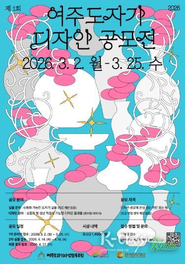 K-Classic News 기자 | 대한민국 대표 도자 생산지 여주시가 도자산업 전반을 조망하고, 도자 디자인의 창의적 확장을 위해 ‘제1회 여주도자기 디자인 공모전’을 개최한다. 이번 공모전은 혁신적인 도자 디자인을 발굴해 문화관광 콘텐츠로 확장하는 데 의미가 있으며, 수상작은 오는 5월 1일부터 10일까지 열리는 제38회 여주도자기축제 기간에 전시할 예정이다.