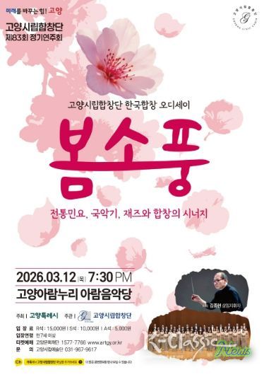 K-Classic News 기자 | 고양특례시를 대표하는 문화사절단인 고양시립합창단이 오는 3월 12일 저녁 7시 30분, 고양아람누리 아람음악당에서 제83회 정기연주회 ‘한국합창 오디세이: 봄소풍’을 개최한다.