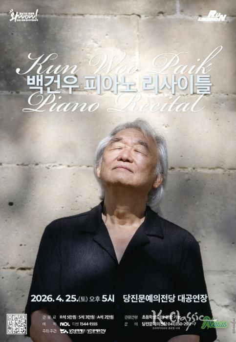 K-Classic News 기자 | (재)당진문화재단·당진문예의전당은 오는 4월 25일 오후 5시, 당진문예의전당 대공연장에서 '백건우 피아노 리사이틀' 공연을 개최한다. 이번 공연은 무대에 선 지 70해를 맞이한 그의 음악 인생을 조명하는 동시에, 새로운 예술적 여정을 향한 출발점으로 기획됐다.
