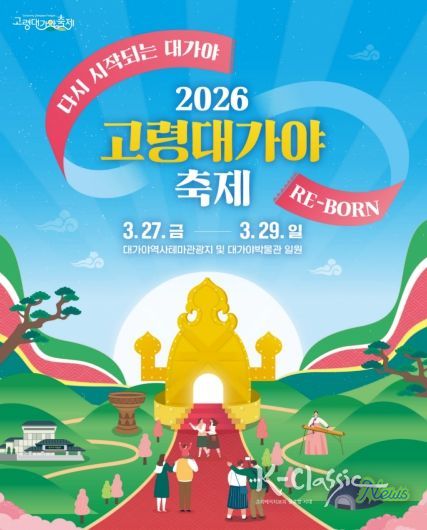 K-Classic News 기자 | 고령군이 오는 3월 27일부터 29일까지 3일간 '2026 고령대가야축제'를 개최한다. ‘다시 시작되는 대가야 : RE-BORN’을 주제로 열리는 이번 축제는 고도(古都) 지정 이후 새로이 주목받는 고령군의 역사적 가치와 정체성을 조명하고, 낮과 밤 모두 즐길 수 있는 체류형·참여형 축제로 진행된다.