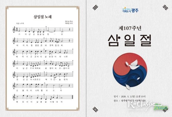 K-Classic News 기자 | 광주광역시는 오는 3월1일 오전 10시 시청 1층 시민홀에서 독립유공자 유족, 광복회원, 각계 기관·단체장, 시민 등 200여 명이 참석한 가운데 ‘제107주년 3·1절 기념식’을 개최한다.