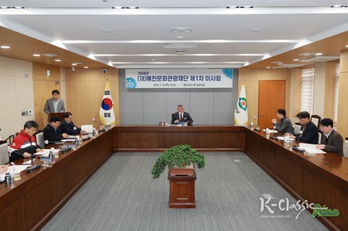 K-Classic News 기자 | 예천문화관광재단(이사장 김학동)은 26일 오후 2시 군청 중회의실에서 2026년도 제1차 이사회를 개최하고 2025회계연도 법인회계 결산, 제규정 개정, 2026년도 제1회 추가경정예산 등 총 3건의 안건을 심의·의결했다.