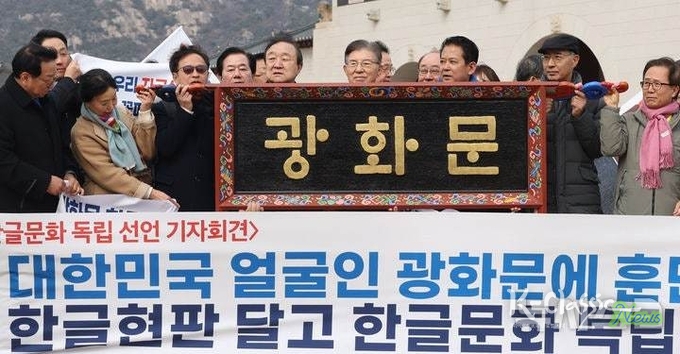 3·1절에 발표된 ‘한글문화 독립 선언’은 단순한 행사 구호가 아니다. 국운 상승의 바탕으로서 한글을 재인식하고, 광화문 현판을 통해 그 상징을 가시화하자는 제안이다. 광화문 600년과 훈민정음 580년의 역사적 접점에서 우리는 선택해야 한다. 전통을 박물관에 둘 것인가, 아니면 현재의 공간에 살아 숨 쉬게 할 것인가. 때문에 광화문에 훈민정음체 한글 현판을 다는 일은 과거를 기념하는 행사가 아니다. 세종의 정신을 오늘의 대한민국 정체성 속에 재배치하는 작업이다.