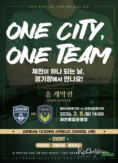 K-Classic News 기자 | 제천시민축구단이 오는 3월 8일 오후 2시, 제천종합운동장에서 역사적인 홈 개막전을 연다.