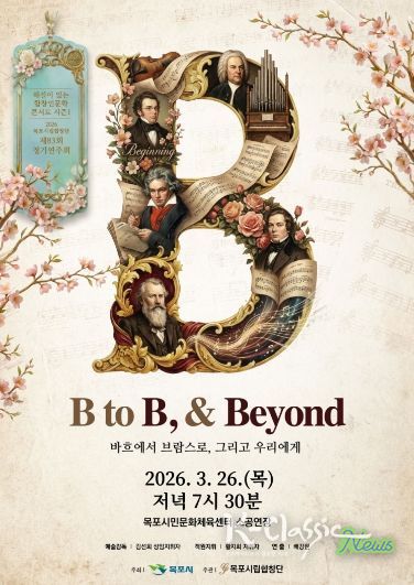 K-Classic News 기자 | 목포시립합창단(예술감독 겸 상임지휘자 김선희)이 오는 3월 26일 오후 7시 30분, 목포시민문화체육센터 소공연장에서 제83회 정기연주회 'B to B & Beyond(Bach to Brahms) : 해설이 있는 합창인문학콘서트 시즌1'을 개최한다.