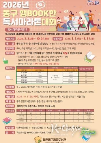K-Classic News 기자 | 대전 동구는 구민의 독서문화 확산을 위해 오는 10월 31일까지 ‘2026년 동구 행BOOK한 독서마라톤대회’를 개최한다고 4일 밝혔다.