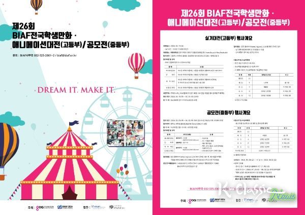 K-Classic News 기자 | 제28회 부천국제애니메이션페스티벌이 애니메이션 인재양성사업의 일환으로 ‘제26회 BIAF전국학생만화·애니메이션대전/공모전’을 오는 4월 11일 부천대학교에서 개최한다.