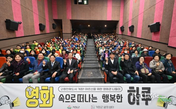 K-Classic News 기자 | 거창군은 지난 5일, 롯데시네마 거창에서 거창군 삶의쉼터(권한대행 김용종) 주관으로 관내 65세 이상 어르신 160여 여명이 참석한 가운데 ‘어르신을 위한 영화관 나들이 사업’ 첫 상영회를 성황리에 개최했다.