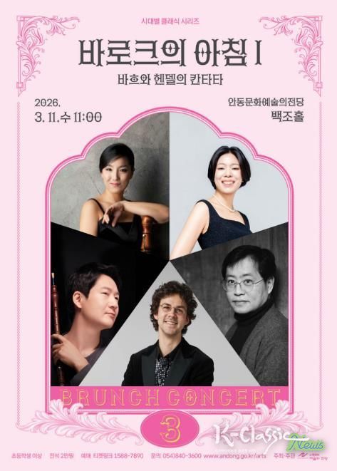 K-Classic News 기자 | 안동문화예술의전당의 올해 브런치 콘서트는 바로크에서 근현대에 이르기까지, 클래식 음악이 걸어온 시간을 따라가는 시대별 시리즈로 구성된다. 매월 둘째 주 수요일 아침에 진행되는 이번 시리즈의 첫 무대, 〈바로크의 아침Ⅰ – 바흐와 헨델의 칸타타〉가 오는 3월 11일 오전 11시 안동문화예술의전당 백조홀에서 열린다.