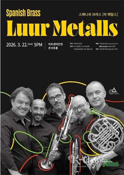 K-Classic News 기자 | 아트센터인천은 오는 3월 22일 오후 5시, 세계적인 금관 5중주단 ‘스페니쉬 브라스 러 메탈스’의 공연을 콘서트홀에서 개최한다. 1989년 창단 이후 35년 넘게 국제무대에서 독보적인 입지를 구축해 온 이들은 이번 공연에서 정교한 앙상블과 강렬한 에너지로 금관 음악의 진수를 선보일 예정이다.