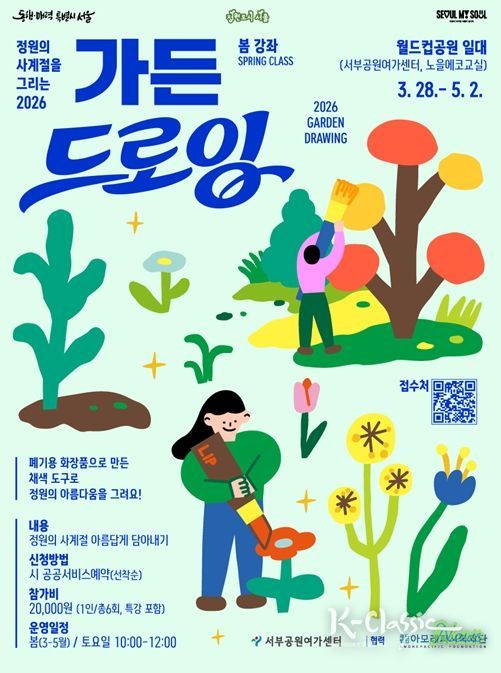 서울에 거주하고 있으며 ‘정원’과 ‘드로잉’에 관심이 있는 사람이라면 누구나 신청 가능하다. 봄 강좌는 3월 11일 오전 10시부터 3월 18일 18시까지 시 공공서비스예약(포스터 내 QR코드로 접속 가능)을 통해 모집한다.
