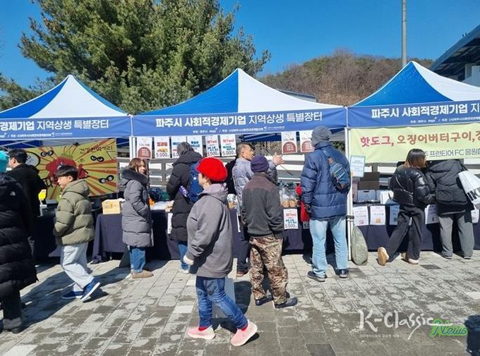 K-Classic News 기자 | 파주시는 사회적경제기업의 판로 확대와 지역경제 활성화를 위해 케이(K)리그2 파주 프런티어 에프시(FC) 홈경기와 연계한 ‘사회적경제기업 지역상생 특별장터’를 지난 7일 처음 개최했다.