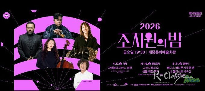 K-Classic News 기자 | 세종시문화관광재단은 조치원의 금요일 밤을 음악으로 밝히는 새로운 공연 브랜드 ‘2026 조치원의 밤’ 시리즈를 오는 4월부터 8월까지 세종문화예술회관 공연장에서 선보인다.