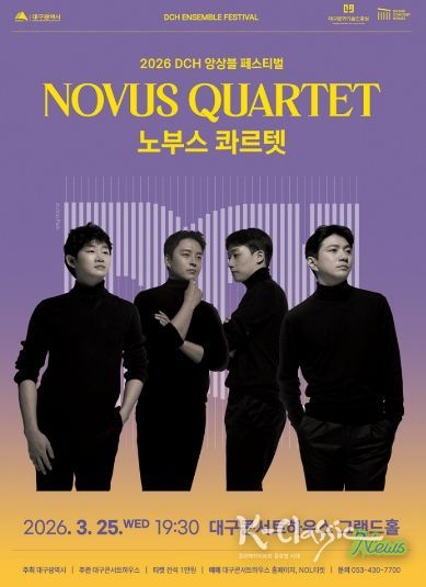 K-Classic News 기자 | 대구콘서트하우스(관장 박창근)가 선보이는 ‘2026 DCH 앙상블 페스티벌’의 대미를 장식할 하이라이트 무대가 찾아온다. 세계적인 현악사중주단 ‘노부스 콰르텟(Novus Quartet)’의 공연이 오는 3월 25일 오후 7시 30분 대구콘서트하우스 그랜드홀에서 열린다.