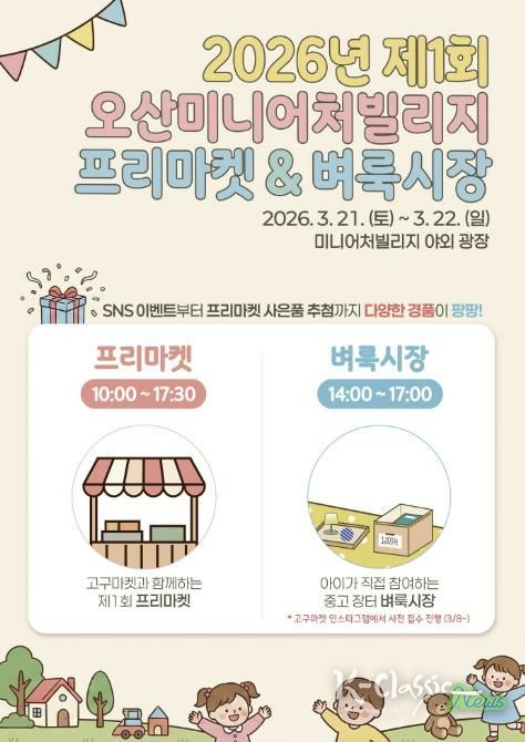 K-Classic News 기자 | 오산의 새로운 문화 거점으로 주목받고 있는 오산미니어처빌리지가 오는 3월 21일부터 22일까지 이틀간 ‘프리마켓 & 어린이 벼룩시장’ 행사를 개최한다.