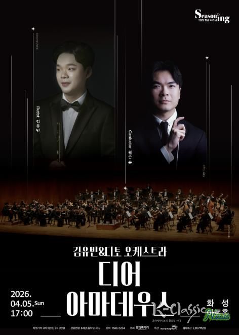 K-Classic News 기자 | (재)화성시문화관광재단은 오는 4월 5일 오후 5시, 화성아트홀에서 김유빈&디토 오케스트라 디어 아마데우스 공연을 개최한다.