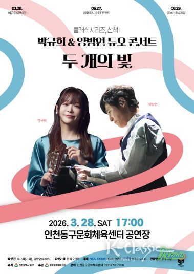 K-Classic News 기자 | 인천 동구문화체육센터는 오는 28일 세계적인 클래식 기타리스트 박규희와 작곡가이자 피아니스트 양방언 듀오의'두 개의 빛' 콘서트를 개최한다고 밝혔다.