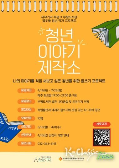 프로그램은 4월 14일부터 6월 9일까지 매주 화요일 총 8회차로 부평도서관에서 진행되며, 7월 28일에는 유유기지 부평 내 유유스페이스에서 약 2시간의 회고 모임이 열릴 예정이다.