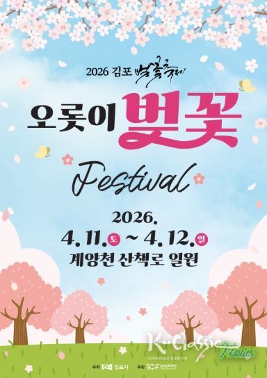 K-Classic News 기자 | 김포시가 오는 4월 11일부터 12일까지 이틀간 김포 대표 벚꽃 명소인 계양천 산책로 일원에서 ‘2026 김포 벚꽃축제’를 개최한다.